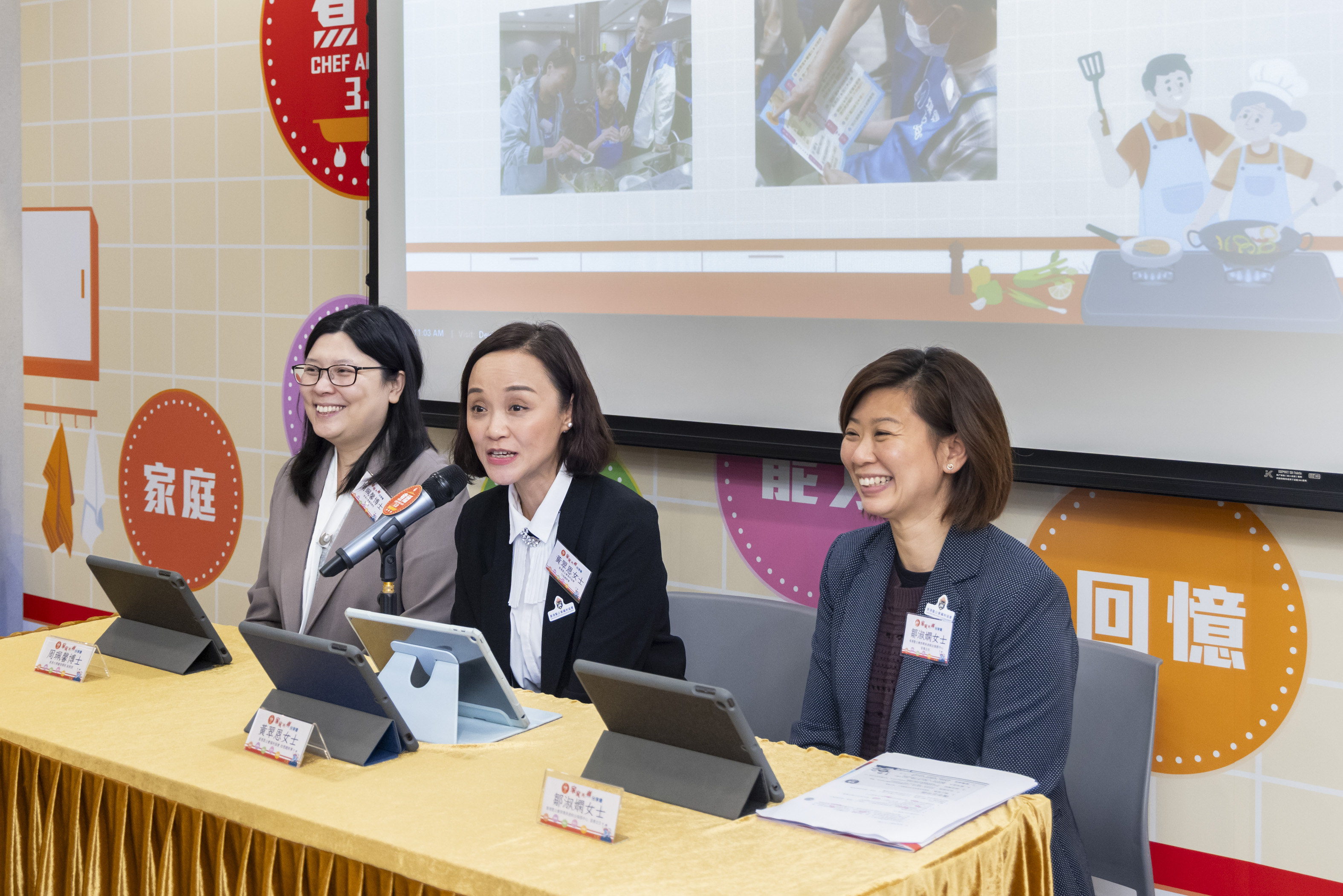 Dr Patsy Chau Pui-hing (left), Associate Professor of the HKU School of Nursing; Ms Esther Wong Chui-yan (centre), Assistant Director of Hong Kong Sheng Kung Hui Welfare Council; and Ms Janis Chau Shuk-han (right), Service Supervisor of Hong Kong Sheng Kung Hui Welfare Council, jointly present the results of Chef Anchor 3.0.
