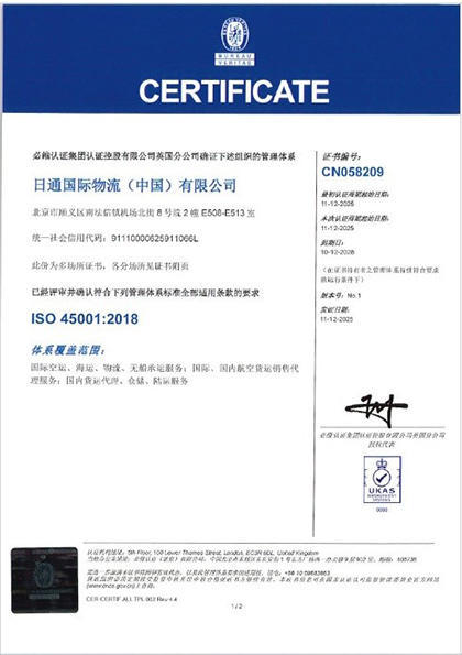 -- Nippon Express (China) Co., Ltd. (Chairman: Sumitoshi Matsuo; hereinafter "NX China"), a group company of NIPPON EXPRESS HOLDINGS, INC. (President: Satoshi Horikiri), obtained both ISO 14001:2015 (environmental management systems) and ISO 45001:2018 (occupational health and safety management systems) certifications in December 2025.