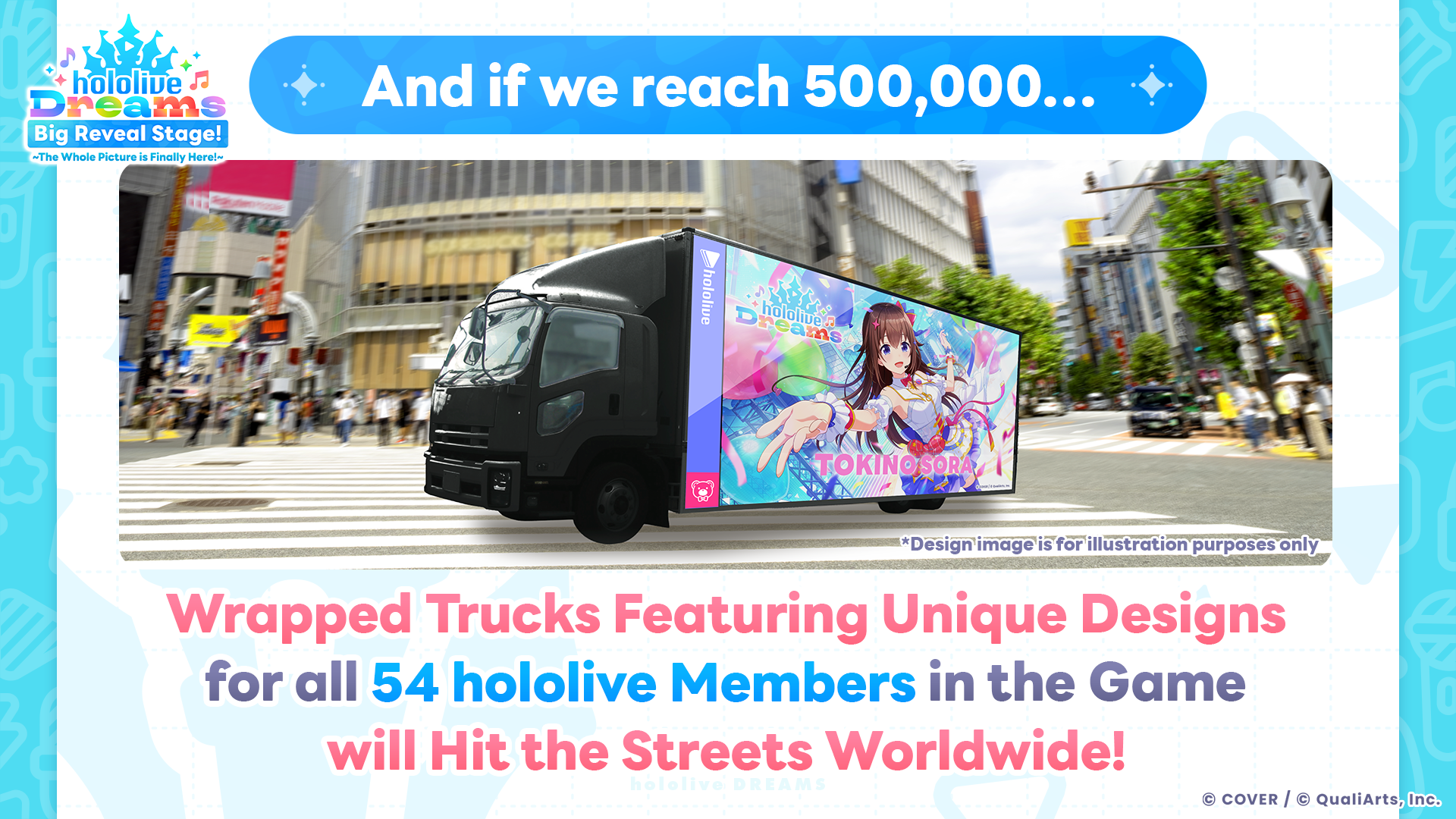 Furthermore, if pre-registrations exceed 500,000, specially designed advertising trucks featuring each of the 54 participating hololive members are scheduled to run in major cities globally.